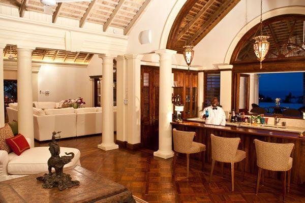Once you drive in through the palm tree-lined entrance, step inside this Montego Bay villa and be prepared for pampering. At your service is a staff that includes two butlers, three housekeepers, a cook-to-order private chef. laundress, 3 gardeners and a business manager. The staff resides in a separate staff house on the property. At least one male and one female staff member are on-site 24 hours a day.