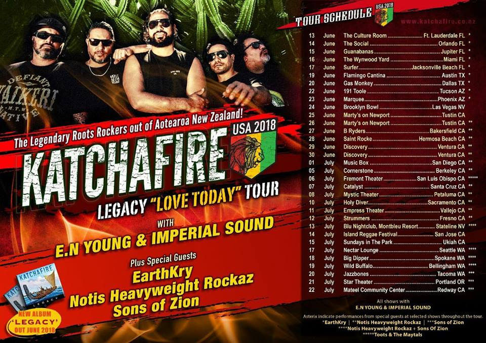 Kingston, Jamaica (MPR Consulting) - For the latter part of 2018, Jamaica's own self-contained roots rock reggae band EarthKry has been on a whirlwind tour, which has seen them, carry the reggae legacy throughout various cities in the United States. Back on their beloved island for a short respite, the band is gearing up for the busy European Reggae Festival season, but have announced that they will first join Katachafire, the legendary reggae band from Hamilton, New Zealand as guests on selected dates of their U.S summer 2018 "Love Legacy" tour. The tour is slated to commence on June 18th and will see EarthKry join Katachafire in Florida (Fort Lauderdale, Orlando, Jupiter, Miami, Jacksonville Beach), Texas (Austin, Dallas, Tucson) and Phoenix, Arizona. Thereafter, the roots, rock reggae band will head out to Europe for their highly anticipated Survival Europe Summer 2018 Tour that will see Vocalist/Guitarist Aldayne Haughtron, Keyboardist Phillip Mcfarlane, Drummer Kieron Cunningham and Bassist Kamardo Blake touch some of Europe biggest stages (stay tuned for full schedule). Speaking on touring with their New Zealand's counterparts, Earthkry's Phillip Mcfarlane stated; "As our aim has been through the vibrations of music to trod the footsteps of The Wailers, Peter Tosh, Jacob Miller, Black Uhuru and Steel Pulse. We have admire other bands who aim to emulate the message, Katachafire has echoed the same sentiment through their various songs, to which we have become fans.", the multi-talented producer/keyboardist also added, "Through their manager we were supposed to tour New Zealand and Australia with them, but the conflict of schedule didn't allow it, so when the opportunity came to join them on their U.S leg, we agreed. All around this is a win for Reggae music lovers and fans and we look forward to join in unity."